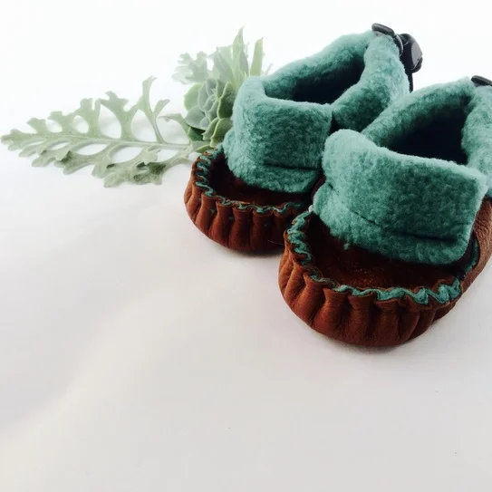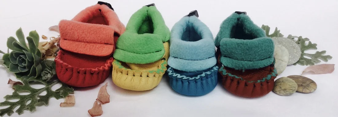 TotMocs is introducing a new deer hide baby moccasin lined with fleece. It's hard to get cozier than that. TotMocs Snuggles eliminate the need for laces. These little moccasins take it to the next level including an elastic closure with an adjustable cinch so you can make them fit just right. These baby moccasins are a charm to keep on those squirmy toes and they're easy to get in and out of.